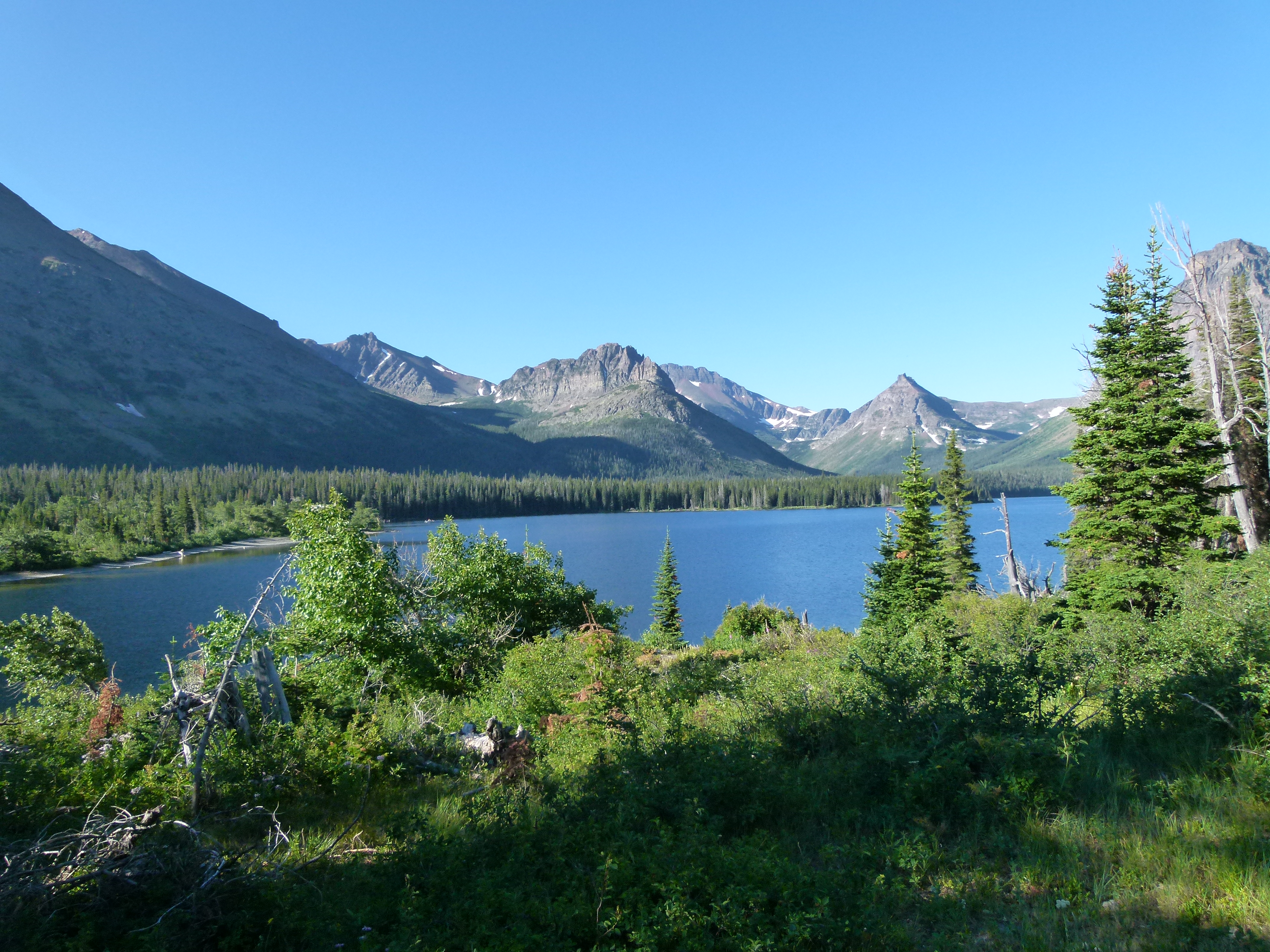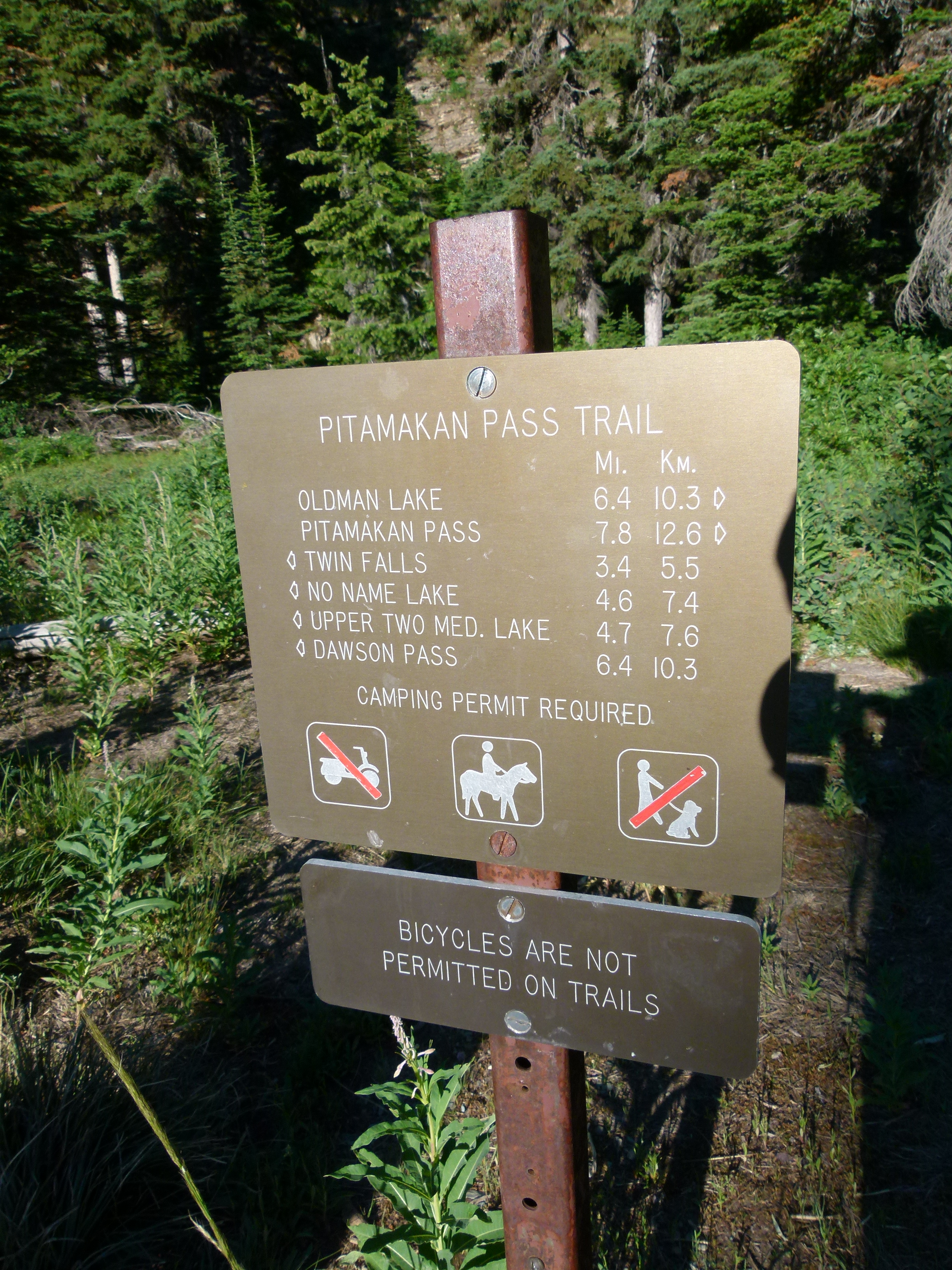 This trail starts at the Two Medicine Lake campground and follows the shoreline, until you start a long, hard uphill climb for a rewarding 13 mile roundtrip adventure. We parked by the trailhead at the back of the campground and took the trail from that point. The trail starts level, has nice views of the lake and shade, thanks to the pine forest. We took the boat tour back, reducing the trail to 8 1/2 miles. You can get boat tickets at the south shore of the lake and catch the boat back by Twin Falls.