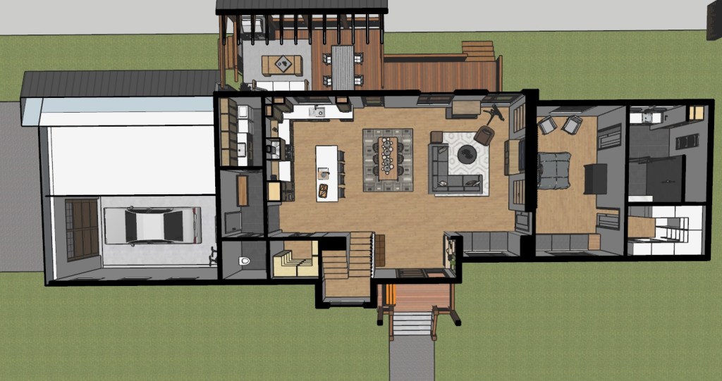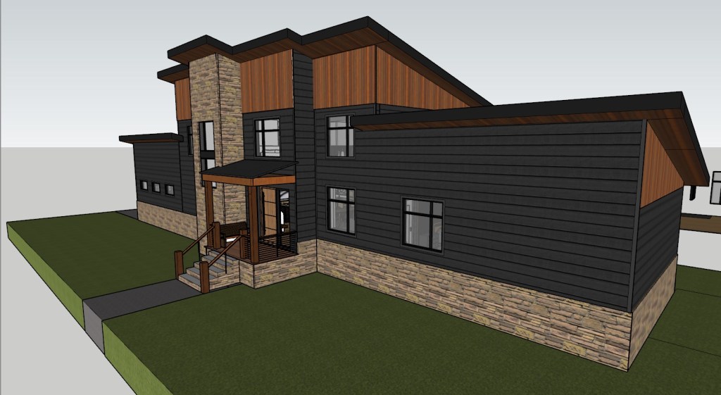 The current two-story floor plan is approximately 2,400’ and we used http://www.Sketchup.com to create this Mountain Modern design. The current design is just the first step, because it will be the architect and local skilled trade professionals that will transform our dreams into reality.