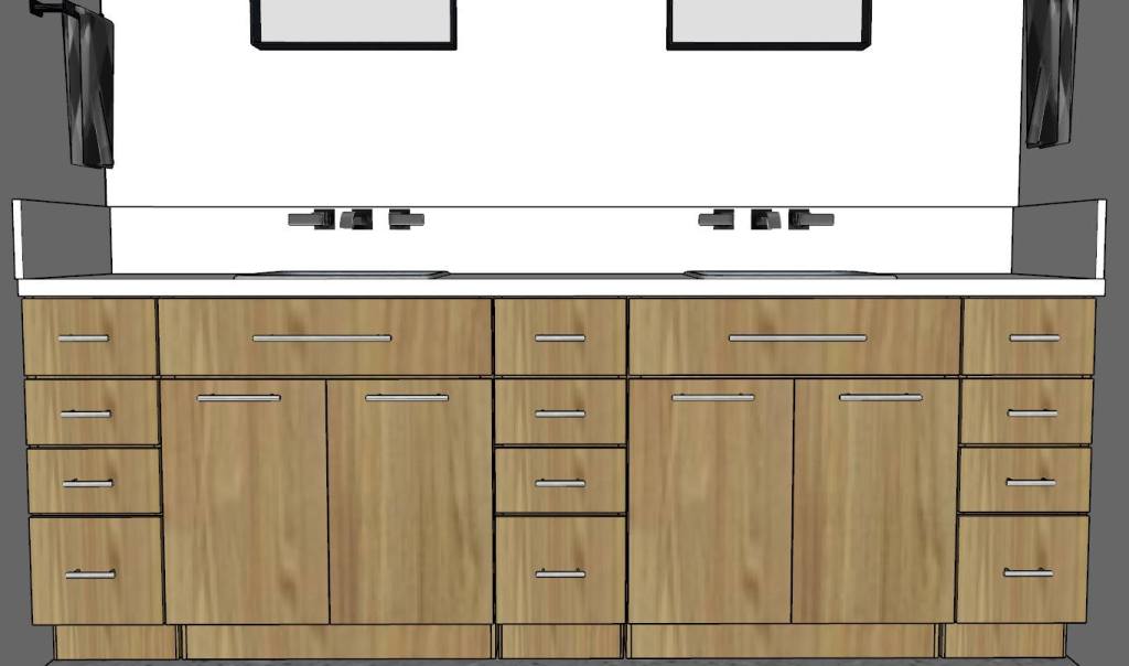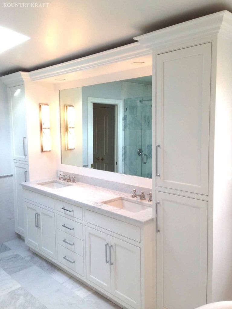 Invest in smart cabinetry storage. Our existing bathroom has two sinks, each with two drawers and a single cabinet. We also have two towers on either side of the sink unit, as pictured in the photograph below.