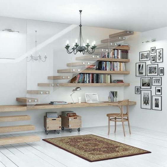 The light you see on the left side of the dining room is our family room, which has a wall dedicated to boxed belongings at this moment. Renovation means a lot of stuff stays packed for now, but the picture below shows one idea for the room. Right now we are planning to add cabinets along the wall where the chairs are in the below picture. The cabinets will be a bit narrow and we will get a small sofa.
