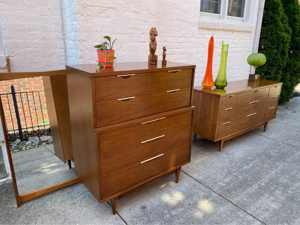 You can find affordable, attractive, and well-made vintage furniture at second-hand shops, used furniture stores, as well as, Facebook Marketplace and Buy/Sell Groups. We love the style and quality of mid-century modern furniture and were elated when we found this set from Marcie at Frogtown Finds. These Kent Coffey pieces are beautiful, but remember that vintage pieces usually have a few imperfections, so be sure to inspect the piece or ask for close-up pictures.