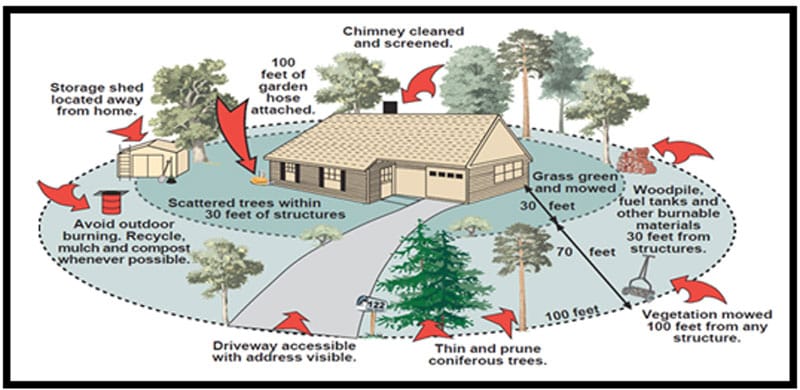Like so many properties in the west, our home will be built in a Wildfire Zone, which means we need to create a defensible space from wildfires around our home. We will remove trees close to our home, install sprinklers around home, bury propane tanks, as well as the following strategies: