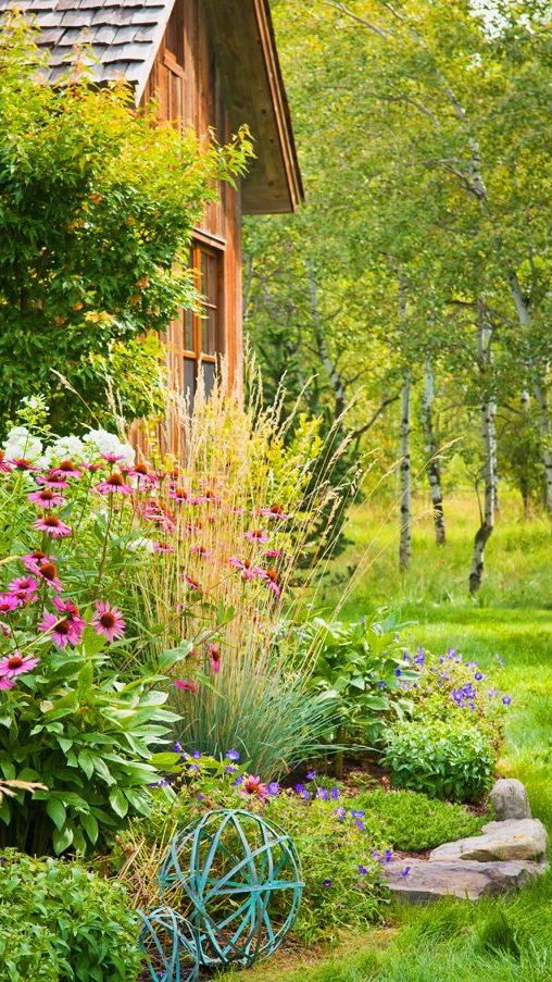 I know many people prefer a flat lot, but a slopped garden offers so many more options to get creative. For example, our home will sit on a raised site overlooking meadows and gardens that flow into nearby trees. We will stabilize the natural slopes by adding a few large boulders, mixed in with smaller ones. Mixing the boulders with flowers and interesting foliage will draw your eye to the views.