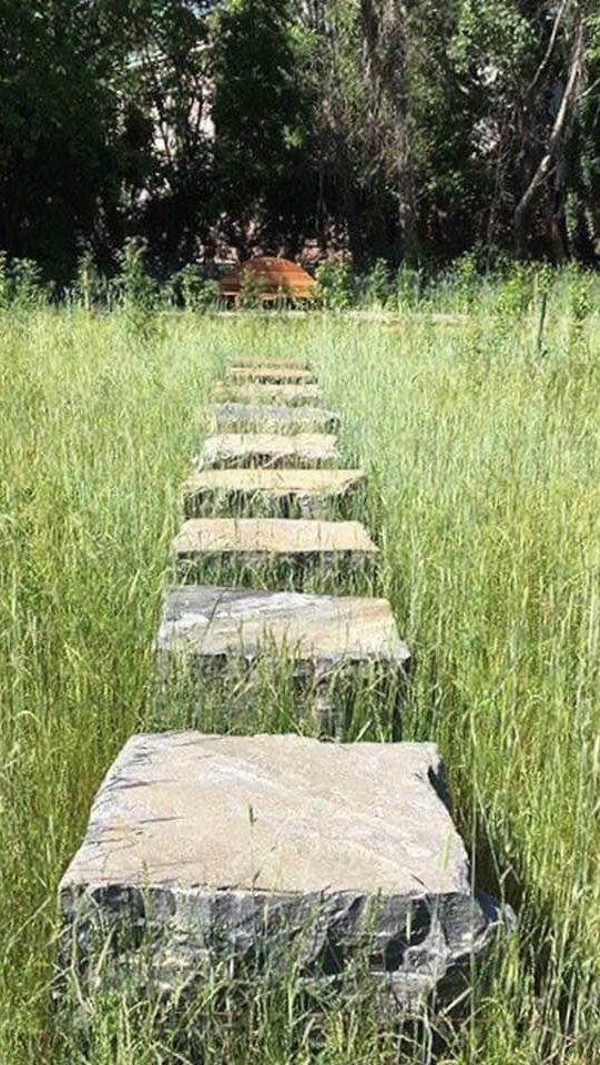 A sturdy stone wetland path allows for a closer look without damaging a fragile ecosystem. Your path could be wooden boards that zigzag across instead of stones.