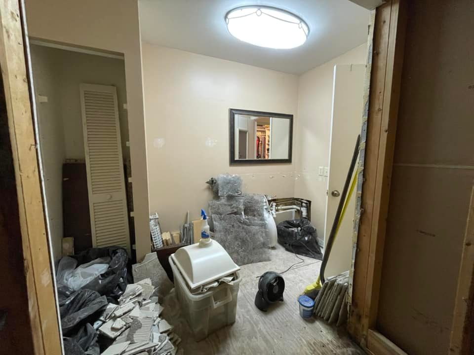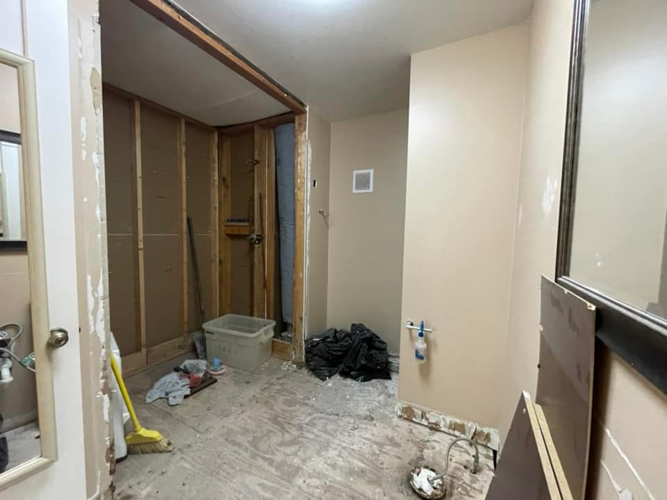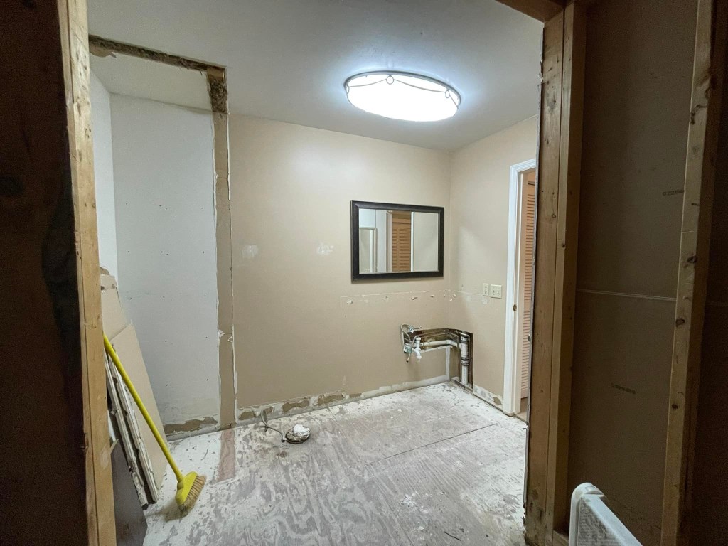 Primary Bath after removing linen closet and demo