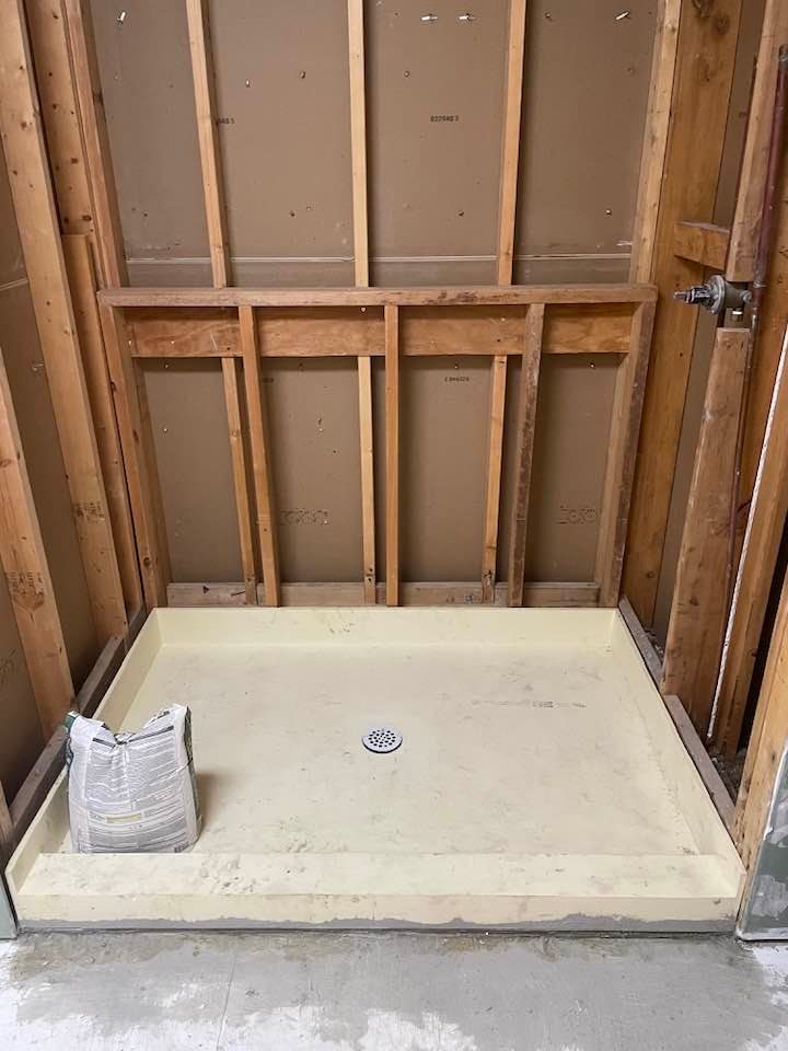 • The shower pan was not sloped correctly, so water would sit in puddles and did not drain properly.
