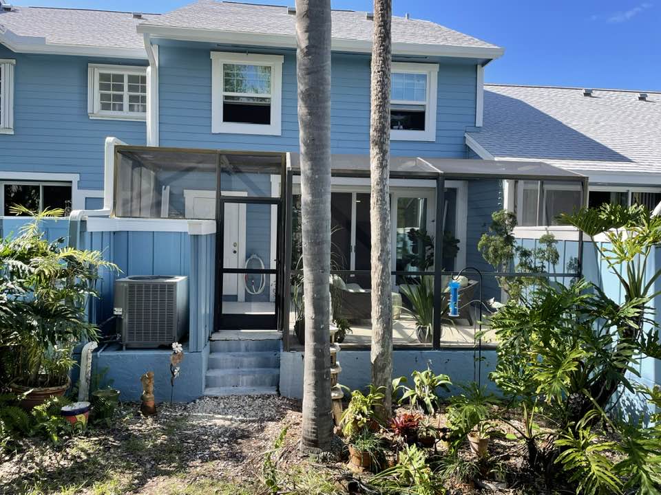 Jim and I have transformed several garden spaces before, including a 1/4 acre at our prior home in South Florida. As you can see from the picture below, all the plants except several palm trees in our back garden were unhealthy and overgrown. In our first phase, we replaced the overgrown, unhealthy plants with new plants in the six feet behind our patio.