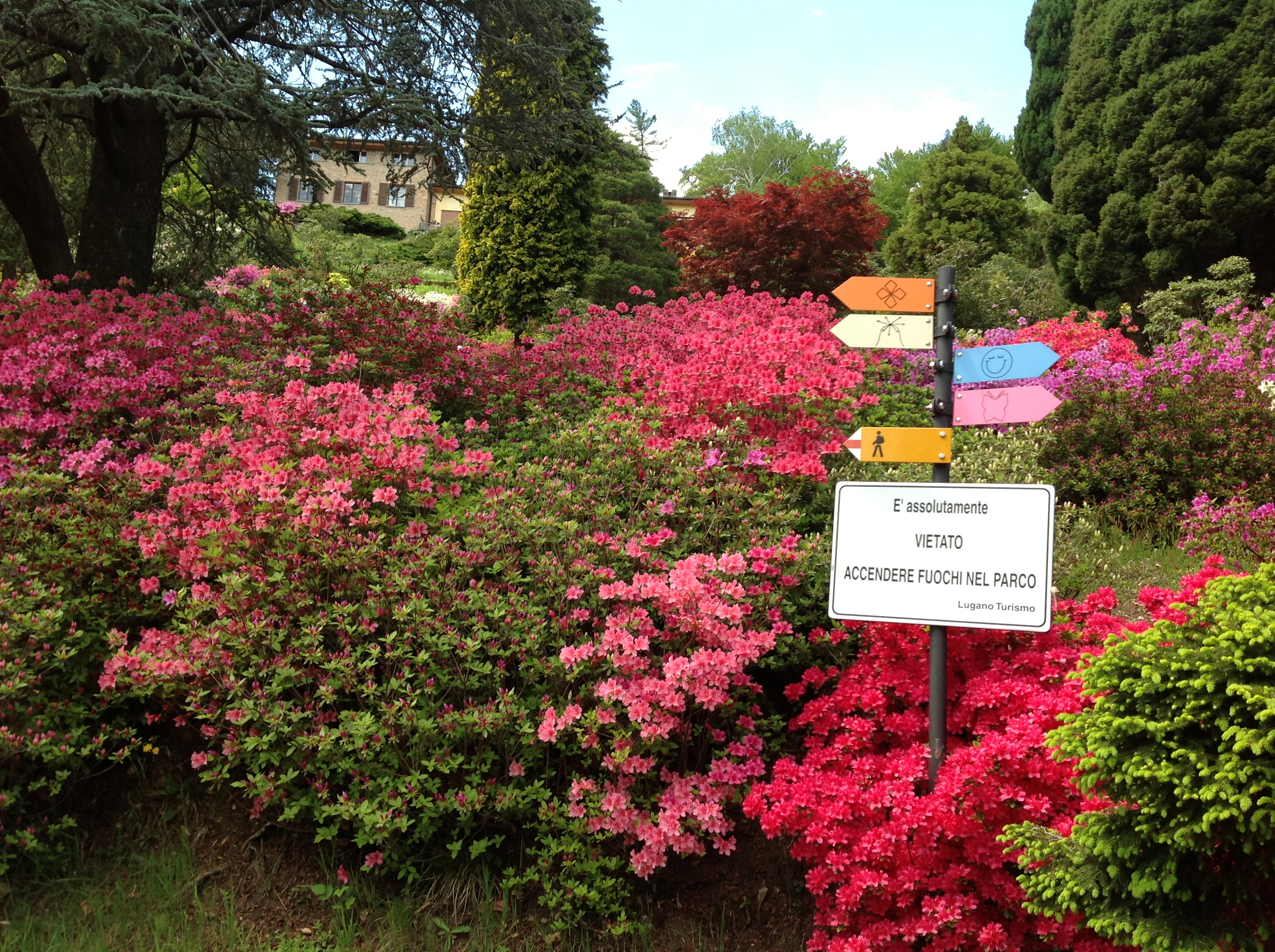We are less than 10 weeks from our trip to Northern Italy, which will include a Home Exchange in the foothills near Lake Maggiore, as well as time in Courmayeur in the Italian Alps. We fell in love with Northern Italy during a brief visit over 10 years ago. While on vacation in Switzerland we decided to escape some of the rainy, cloudy weather and spend two days in Lugano, Switzerland. Jim found a beautiful park, Parc San Grato and confirmed that the forecast for the area was sunny. I’m so glad we went on this last-minute adventure and if you are ever in the area, I highly recommend visiting Parc San Grato. I share some of the pictures from the park below: