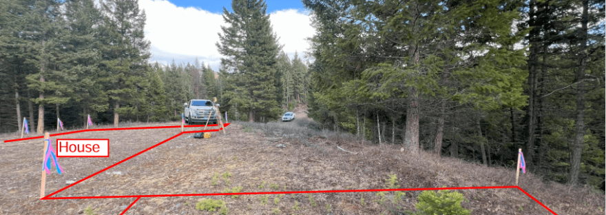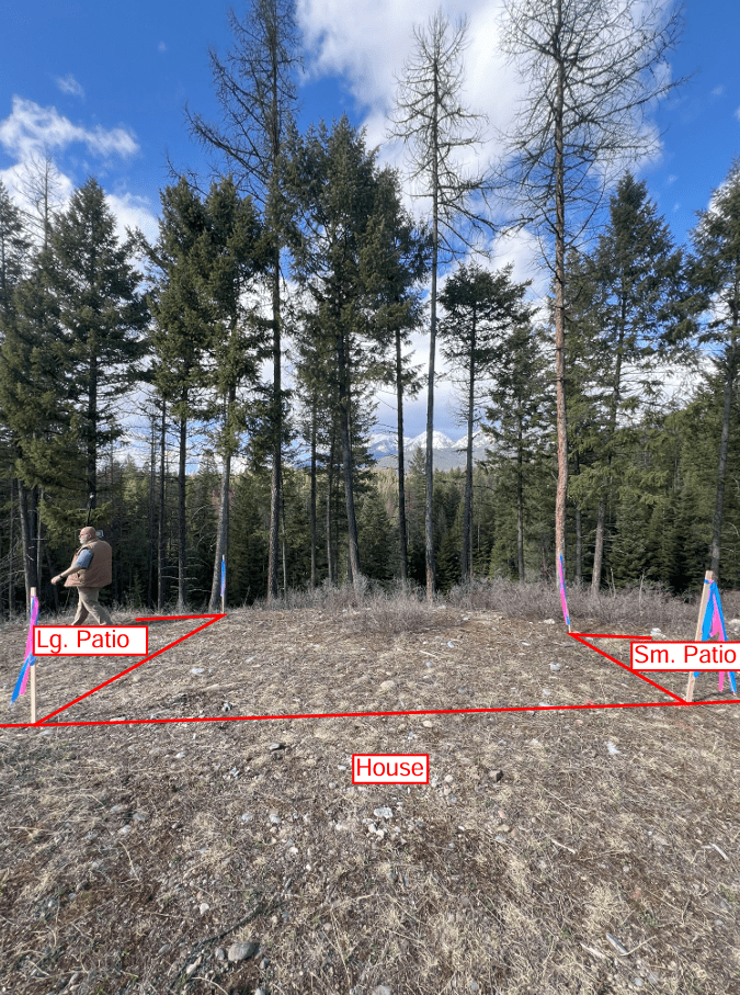 Spring came early in NW Montana, so Jason from J Martin Builders (https://www.jmartinbuilders.com) worked with his excavator to lay out our site location, which provides a better driveway location, awesome views from the house, and a flat portion of yard on the North and West sides of our build. In addition, we’ll have a flat area around the front of the house. In the picture below, you’re standing in the living room looking out to the Swan Range. Our primary bedroom is to the right and the kitchen is on the left. The living, kitchen and our primary bedroom, as well as a guest room will have mountain views.
