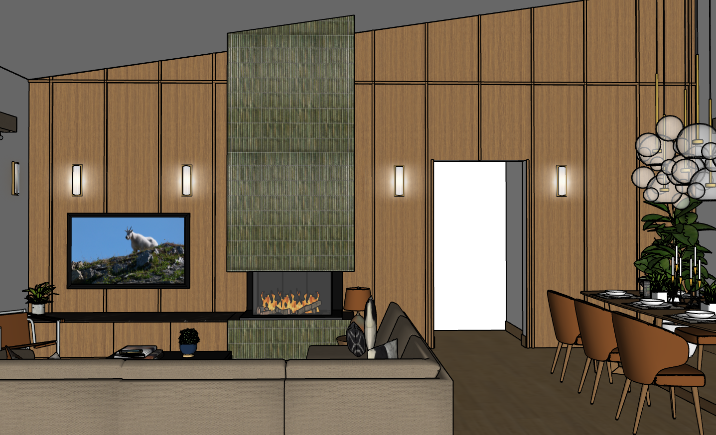 Indoor-outdoor living is the final MCM characteristic I’ll cover today. As you can see, our design has intentional connections to its natural surroundings. When you’re inside, your gaze is pulled to the forest just outside and the mountains towering above the trees. The design offers lots of opportunity to be outside. It features three covered patios offering shelter from the elements whether we are grilling, entertaining or quietly watching the wildlife.