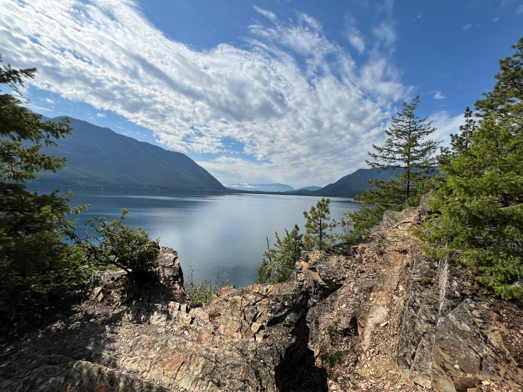 There are several fallen trees you’ll need to climb over on this trail, but the views at the campground make it worth the effort. The backcountry campground is rustic, including an open-air pit toilet with a hell of a view! We had a nice lunch on the beach, then headed back. During the way back, we left the trail and walked along the lake’s shoreline.