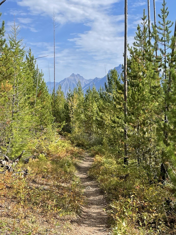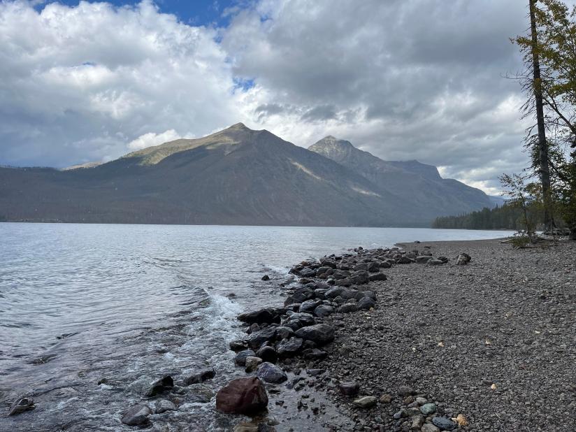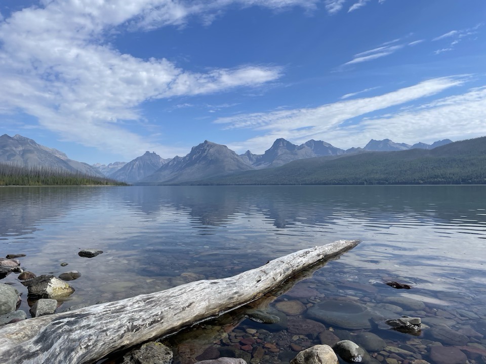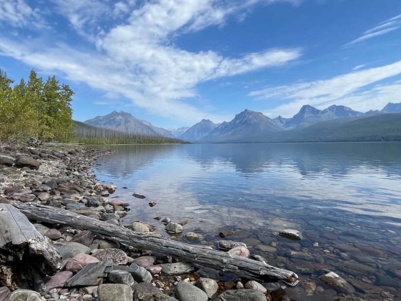 This trail runs along the western shore of Lake McDonald through trees and open burned areas from the 2003 wildfire. There are lots of lakeside views, but without shade, this trail makes for a hot walk in the summer. We heard the loud tap, tappy-tap, then spotted a large, pleated woodpecker on a burned tree feasting on bugs.