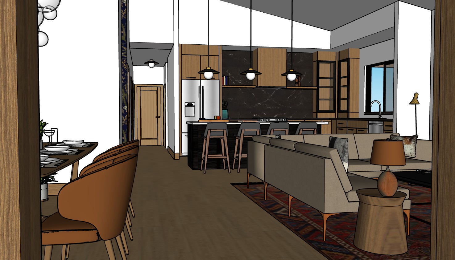 Our cabinets have been a mid-tone white oak in the SketchUp model but, we’re considering other stain colors and wood species. I’d go for a walnut, but my hubby, Jim will need to be convinced. We both love the natural beauty of wood, so our cabinets and most of the floors will be wood. Our partners, Joni Stoll Designs will be there to help with final selections that will look great together.