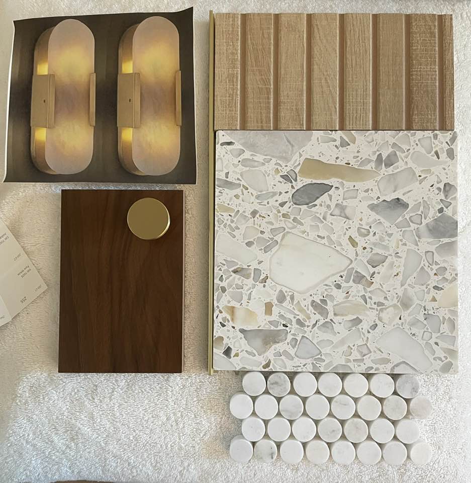 We’re bringing all our samples, so hopefully we’ll finalize the selections for our cabinets and flooring. There’s a light-colored wood floor option from Floor & Decor that could work but we’re looking forward to seeing what local flooring stores have to offer. When possible, we prefer to use natural materials such as hardwood over Luxury Vinyl Plank flooring. Pricey terrazzo is our top choice for the primary bathroom, but we can choose cheaper tile options for the guest bath, laundry, mudroom, and storage spaces.