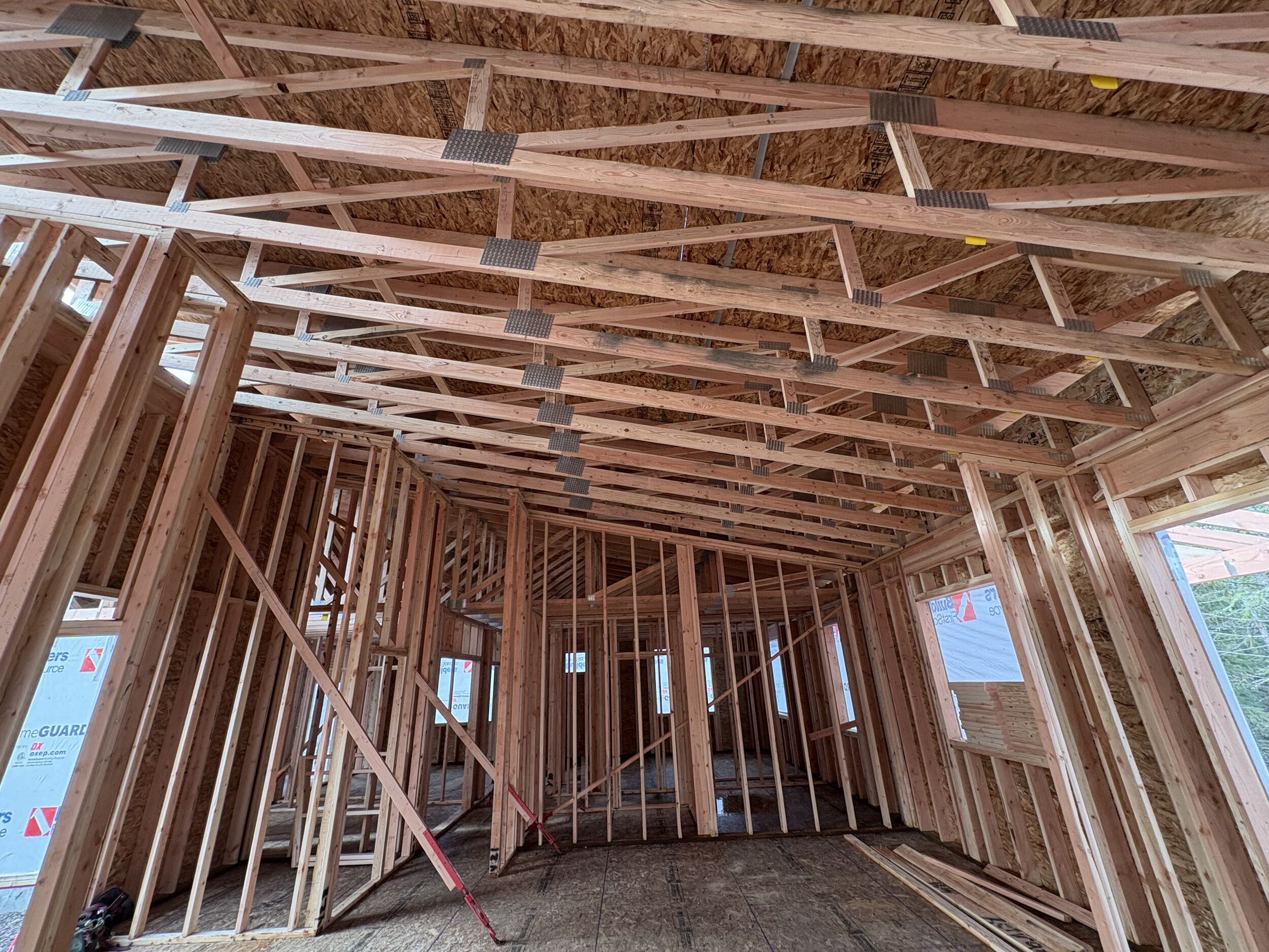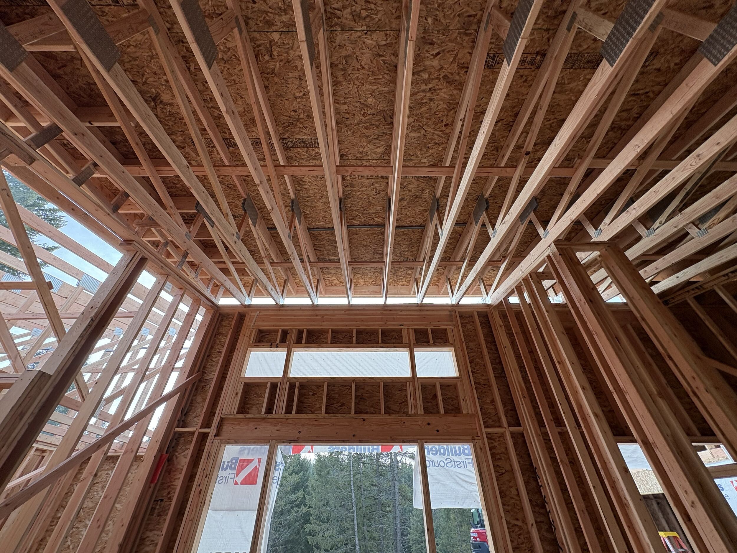 The mono truss system is a one-sloped truss that forms a right-angle triangle. This type of roof allows for more sunlight and visual space, proper drainage, and is relatively cheaper. In South Florida, we’ve got to worry about wind from Hurricanes and tornadoes. In NW Montana it can get pretty windy, but we also need to consider snow loads, which adds a considerable amount of weight the house needs to carry. Our builder, Jason (J Martin Builders) worked with a local truss company to calculate the appropriate design and pitch.