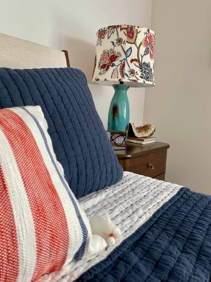 Having the ultimate bedroom retreat means having plush, luxury bedding with high thread count, and decadent layers. Bedding in organic textiles and clean lines that offer simple luxury. We’ve never had a TV or work area in this space, so we’ll have room for a seating area and bench at the end of the bed. We’ll also bring in colors and textures that make our space personal. As mentioned earlier, we’ll have blackout roller shades to help set a healthy rhythm for the mind and body. Texture is a must if you’re going with a neutral color palette. It will add much needed interest for a neutral space.