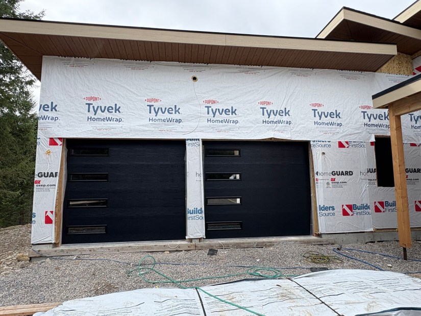 As I’ve said on prior posts, we are thrilled with our build partners, J Martin Builders. They are making steady progress, including installing the garage doors which look fantastic! The modern style in black with side windows compliments the house design and color scheme. We’re using side mounted garage door openers, which saves overhead storage space and are easy to maintain. These systems are also quieter than overhead openers. You’ll need a higher ceiling and an outlet near the door, as well as space next to the garage doors to fit the openers.