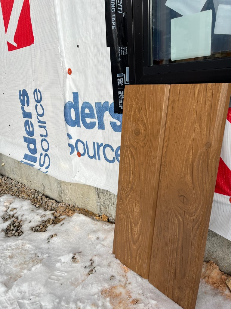 The LP board and batten we’re using provides texture, character and a cozy warmth to the exterior. While board and batten siding options are typically wood, it can be made from vinyl, fiber cement or steel. But when it comes to durability, engineered wood siding is a smarter buy compared to solid wood siding because it mimics its look, but features greater durability and easier maintenance.