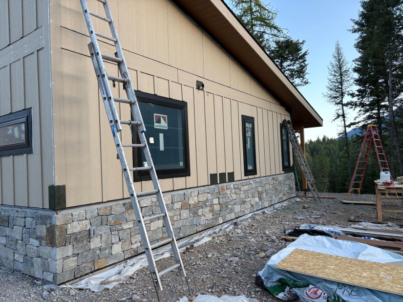 The natural stone veneer on our exterior is called Moose Mountain. It is quarried from a mountain top rock formation located in NW Montana. The smokey grey with tan and chocolate tones and lineal profile give the exterior a rustic touch. There is an art to mixing colors, so we’re grateful to John for finding the perfect mix for our subcontractors to install. This stone, Argillite is everywhere in the valley–lining the bottom of creek beds, along hiking trails, layered throughout road cuts, in the cliffs around Flathead Lake, piled at the corners of plowed fields, as well as covering fireplace hearths and floors. It’s the predominant rock in Glacier National Park, which is located just a few miles to our northeast.