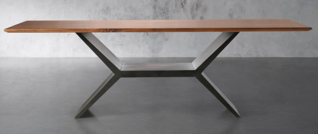 In addition, we are looking for a walnut dining room table and chairs for our adjacent dining room. We both really like the Sarizza 95″ x 40″ rectangular walnut table with the Loxo black metal base. The top is sourced and made in Highpoint, NC and the base comes from Italy. The tabletop is solid walnut, which will look fantastic with the other walnut elements in the house. The price sounds like a steal, until you see the additional $1,099 “White Glove” shipping fee. Even with the high shipping costs, it is one of the nicer tables we’ve seen so far. I’ve ordered a walnut sample from Sarizza and expect it to come in today. Another option in the same price range is the Jacob from Arhaus Furniture, which also has a solid walnut top and a black metal base.