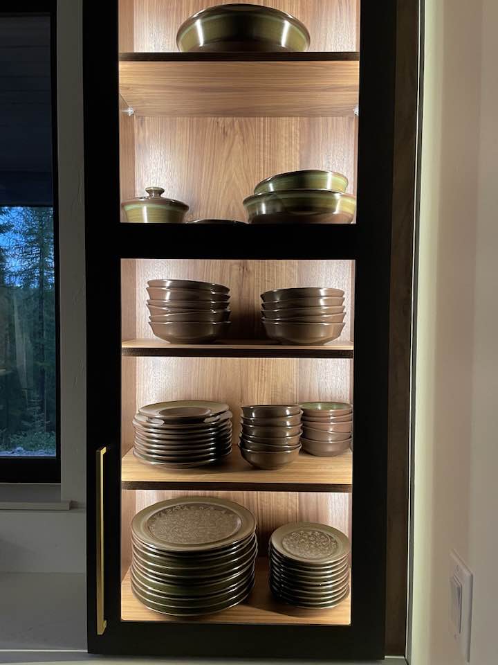 In addition to the vintage coffee table, I also found some beautiful Franciscan earthenware at a local antique shop. When shopping for vintage dishes or glasses, be aware that some pieces could contain lead. We tested these and they are fine, but you don’t want to use chipped or cracked pieces. The Maderia collection was made in the 1970s and still looks fantastic. The brown and green works with our colors and looks fabulous in our walnut glass cabinets.