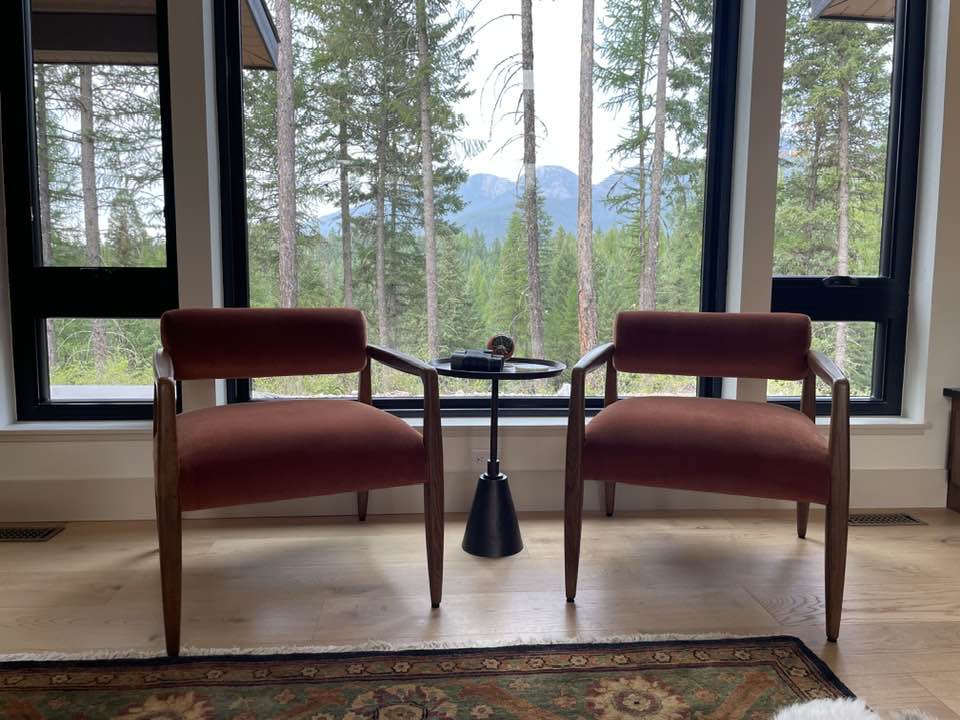 We’ve finally received the Interior Define Gwen accent chairs. As I’ve mentioned, this company allows you to customize the fabric and color. We picked a Rust color in performance velvet, which feels so luxurious and has a rub count of 100k, which should wear well on these chairs. The fabric is also stain and liquid resistant. The frame is made of walnut, which compliments our White Oak flooring without being matchy. The Mid Century Modern inspired design works great with our MCM inspired home. The low back on these chairs don’t block the window or the views out.