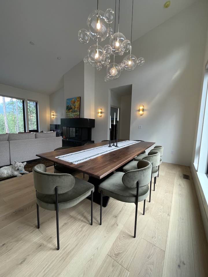 We also received the Interior Define Hollis dining room chairs this week. They look great with the Arhaus Jacob walnut dining table. We love the feel of the performance velvet and the deep green of the Coriander in this room. The rub count is also 100k for these chairs. The black metal chair frame ties in perfectly with the dining table’s Vertex black metal base.
