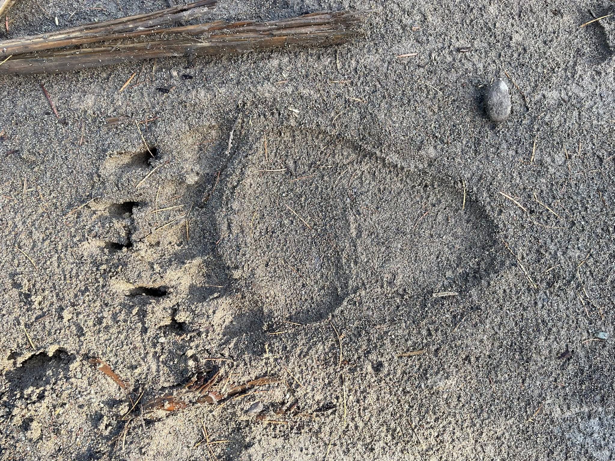 We’ve got outdoor cameras on the front and back of the house. Plus, we just put up our first trail camera at a spot we thought could be popular with wildlife. Of course, we have lots of deer, which will be a challenge for our garden plans. However, we’ve also seen fox, coyotes, and a raccoon. The first picture is a black bear print.