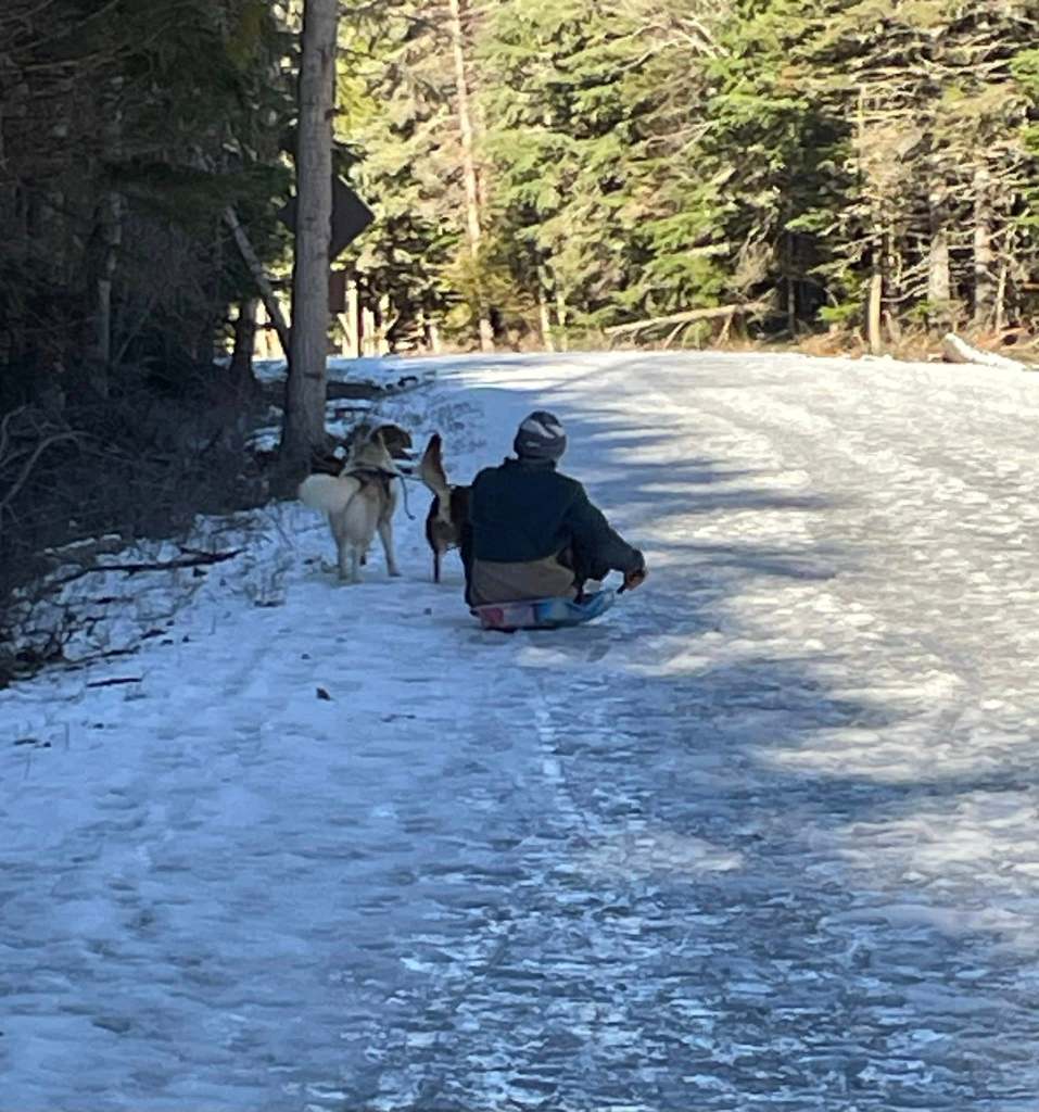 On our trip back to the car, we passed a guy on a sled being pulled by two dogs. They seemed happy enough until he got to a small hill, where they needed a bit of encouragement to continue. It was entertaining, but this is a good time to remind all visitors to Glacier that pets are not allowed on trails in the park.