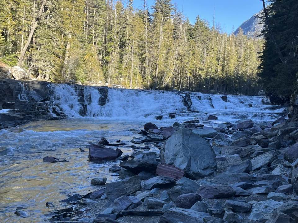 The loop hike continues by walking down to the cascade, which receives its name from a Kootenai phrase meaning “a good place to dance”, or “where people dance”. From the junction the trail continues by passing through another section of dense, old-growth forest. You’ll also likely notice that the undergrowth vegetation is a deep lush green on either side of McDonald Creek throughout this area. Being situated on the eastern edge of the maritime climate of the Pacific Northwest, the Lake McDonald Valley also marks the extreme eastern limits for western hemlocks and red cedars. Some of the trees in this area are estimated to be more than 500 years old.