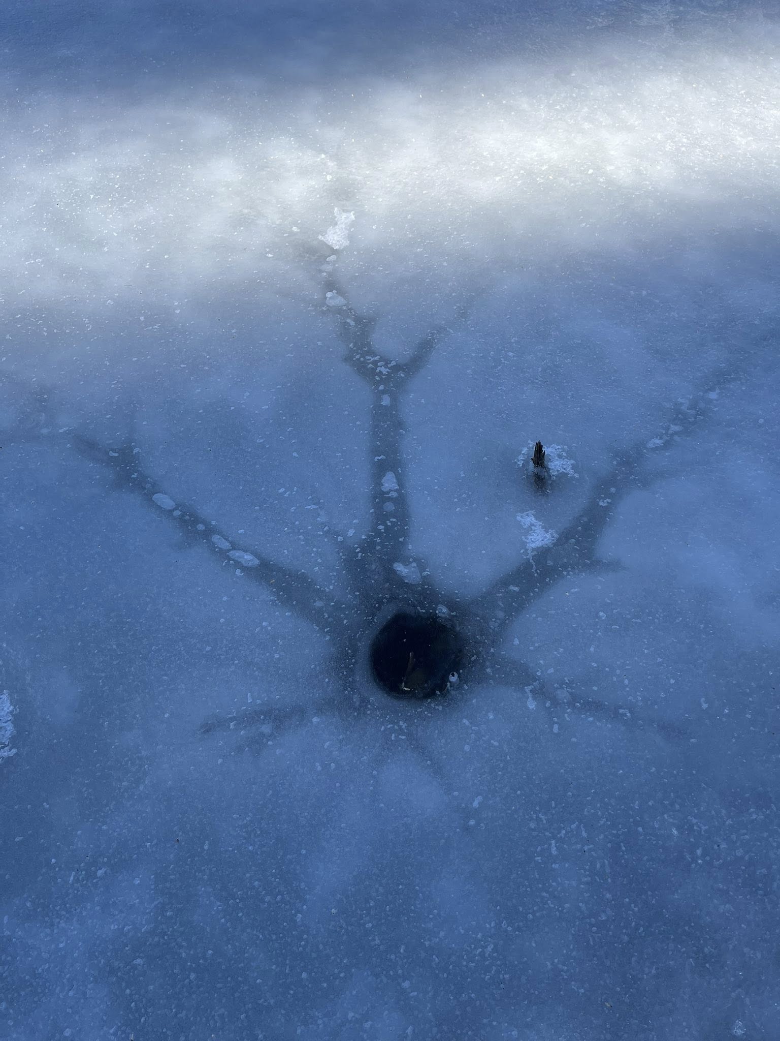 A hundred yards or so from the parking area you’ll reach the Avalanche Trail junction, where you should veer to the left. A short distance later you’ll reach a second junction, and you’ll want to go right. Before you get to Johns Lake you’ll walk by a small pond, where we laid out a blanket and had soup and hot tea for lunch before continuing along our journey. You can spot an open area from the trail before you get to Johns Lake. Once you’re at the lake it opens up to a small gravel beach overlooking the lake. Across the frozen lake we saw emerald, green trees and snow dusted mountains in the background. You can see a branch frozen in the lake below, as well as a picture of me standing for the first time on a frozen lake. Please be cautious and make sure the lake is completely frozen before you walk on it.