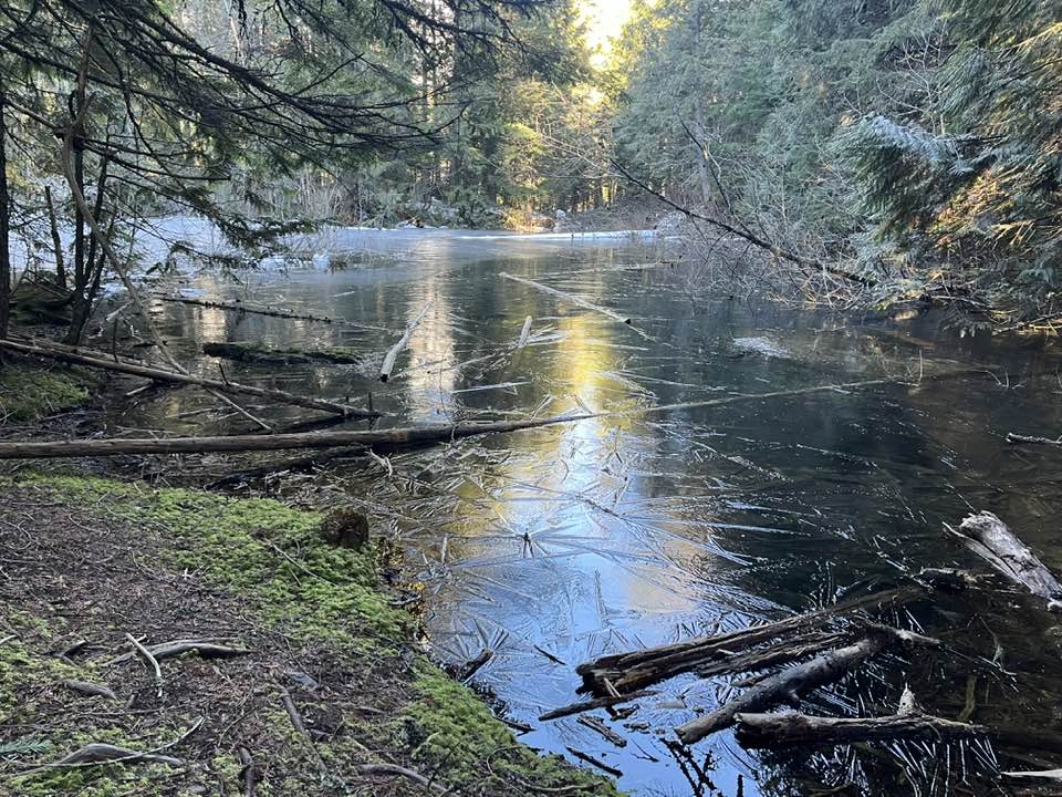 Roughly two-thirds of a mile from the trailhead we came back to GTTSR again. After crossing the road, you’ll want to follow the path that leads to the Sacred Dancing Cascade parking area. When the road is open, this lot provides an additional access point for this hike in case the Johns Lake Trailhead parking area is full.