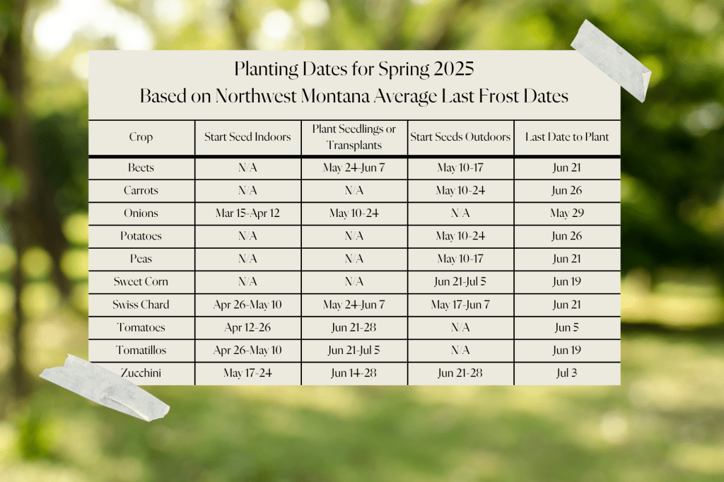 The climate in NW Montana is very different than South Florida, including long, cold winters, intense solar radiation on clear days, and wide temperature swings. The shorter growing season means using a greenhouse to start seeds early instead of buying plants that are already growing. To plan your own garden, you will want to know your frost dates. In Montana the last spring frost is the first week in June and the first fall frost is around September 15th. That gives us about 100-120 frost-free days, so we will start our seeds in a greenhouse, but you could also start them indoors on cold frames to stretch your season.