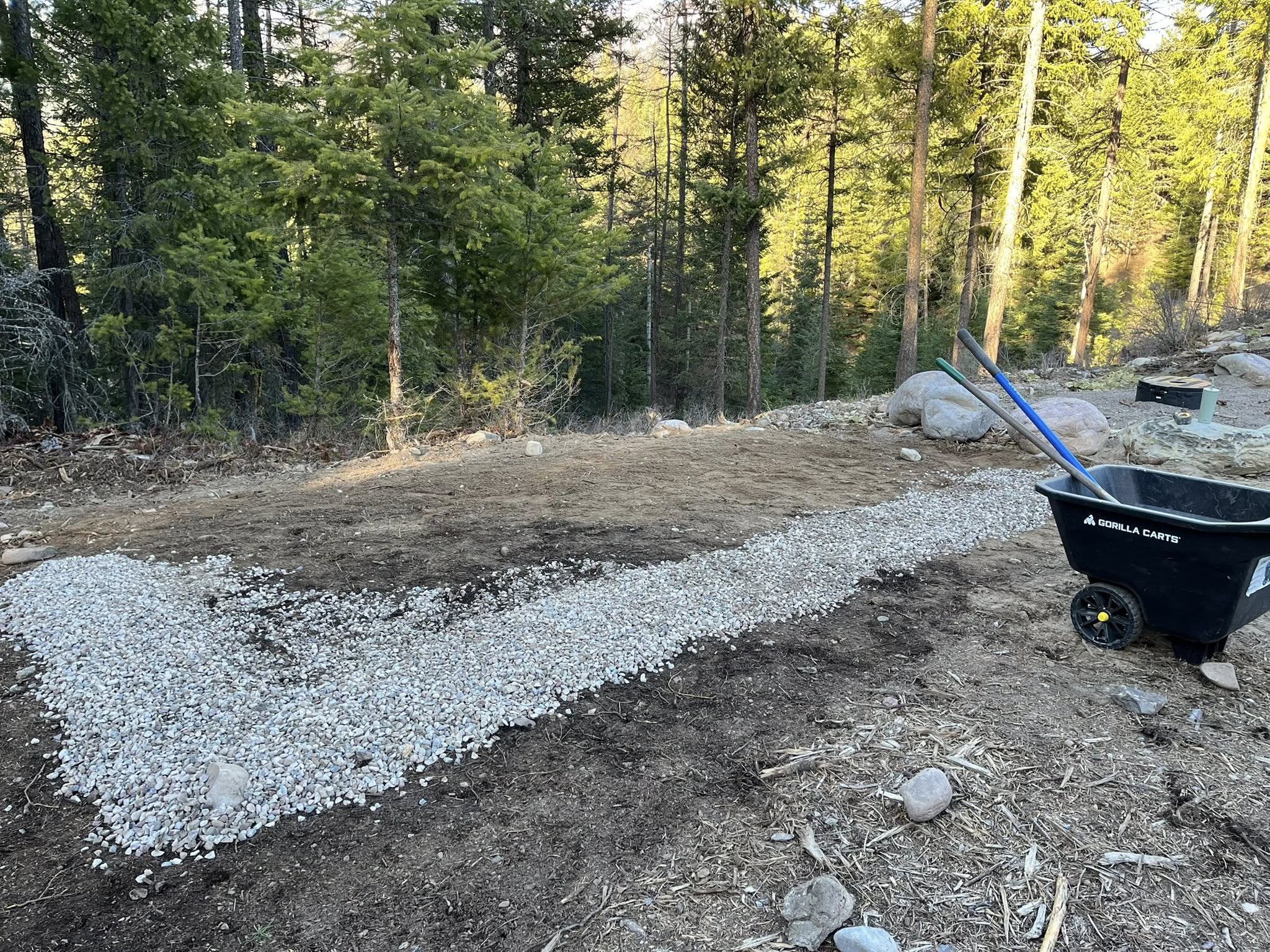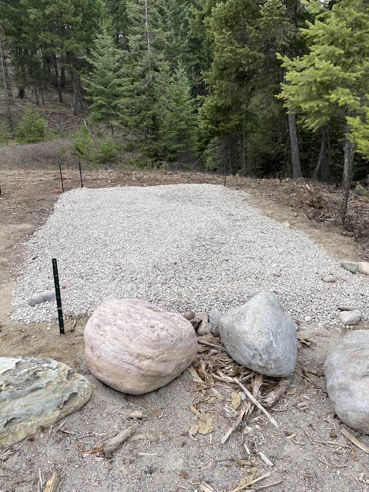 We had to clear the greenhouse site, then we placed gravel there to help level the site: