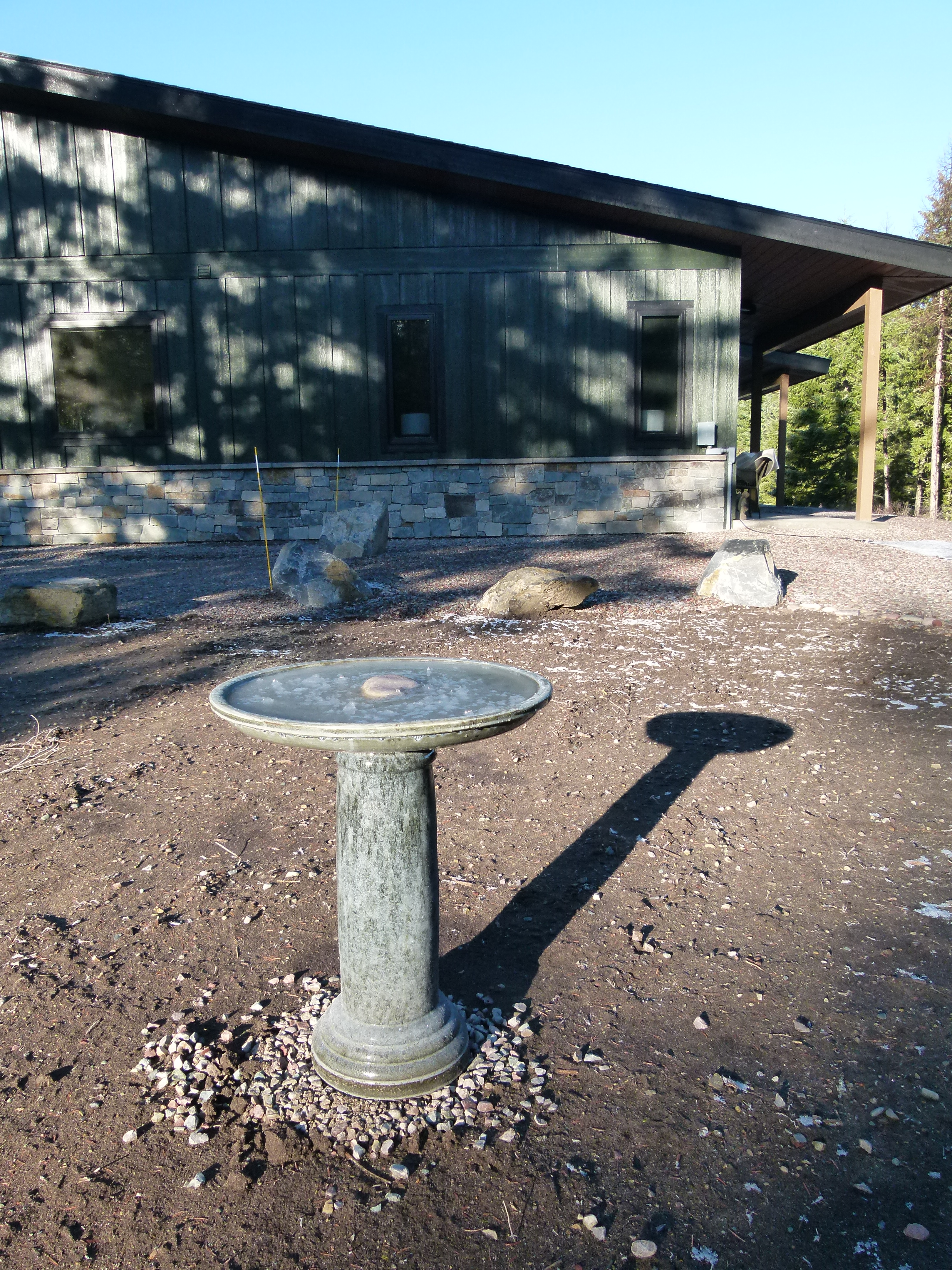 We’ve added the all-important water element with a ceramic birdbath from Wayfair. It is placed in the middle of our native wildflower and bunchgrass bed.