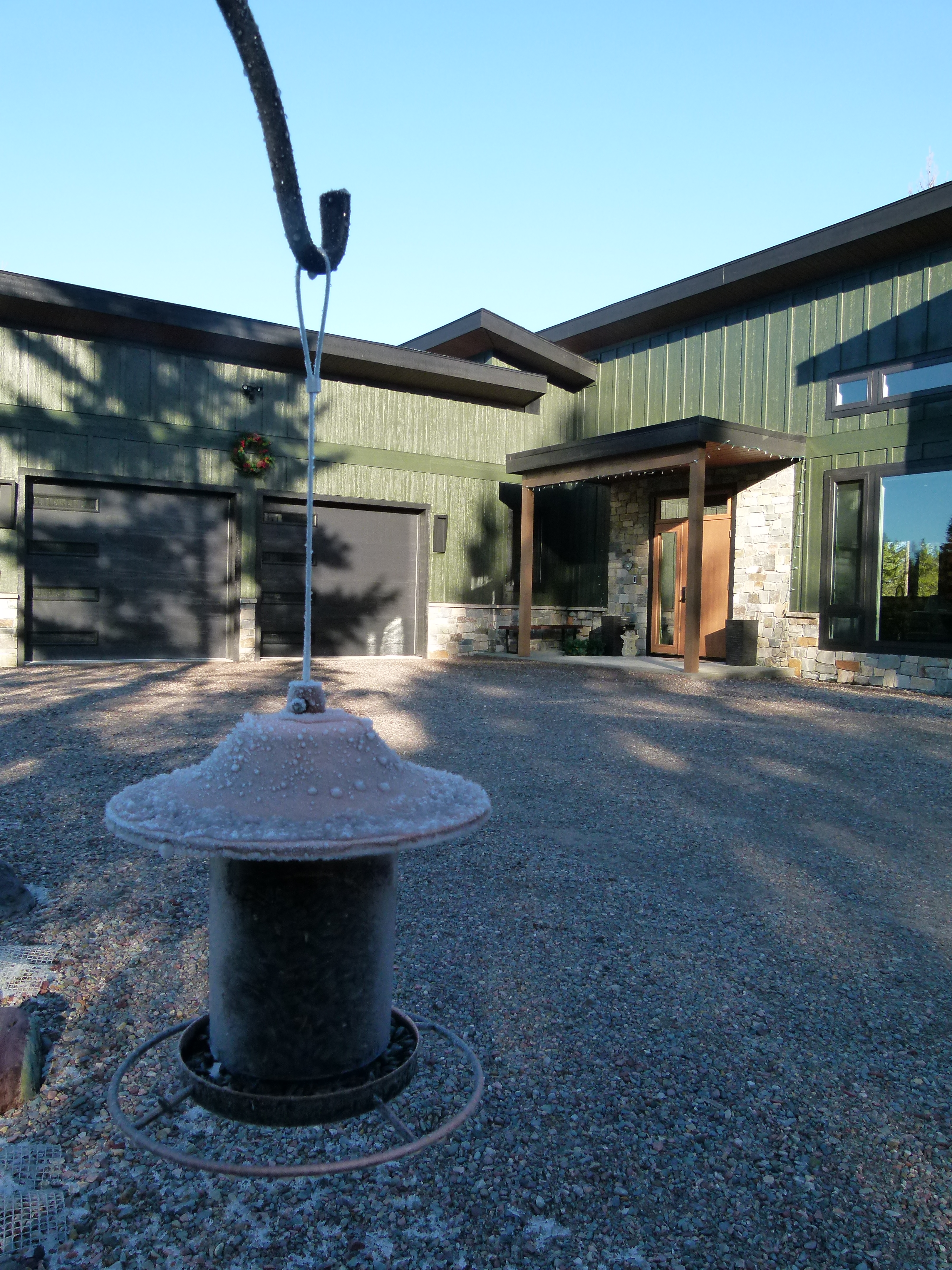 The chickadees and red-breasted nuthatches visit the feeder filled with Black Oil Sunflower seeds every day.