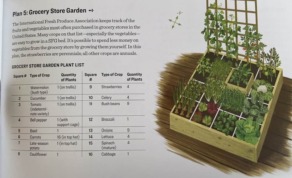 “The International Fresh Produce Association keeps track of the fruits and vegetables most often purchased in U.S. grocery stores. Many crops on that list-especially the vegetables-are easy to grow in a SFG bed. ” –Square Foot Gardening