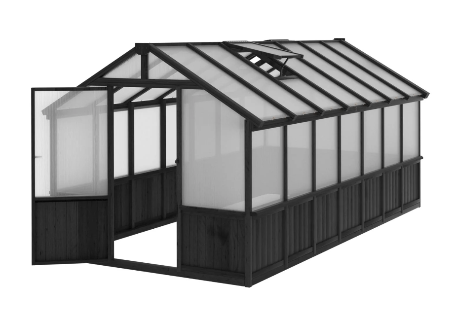 Here is the 8′ x 16′ Veikous Cedar Greenhouse ($1,399) we’ve ordered: